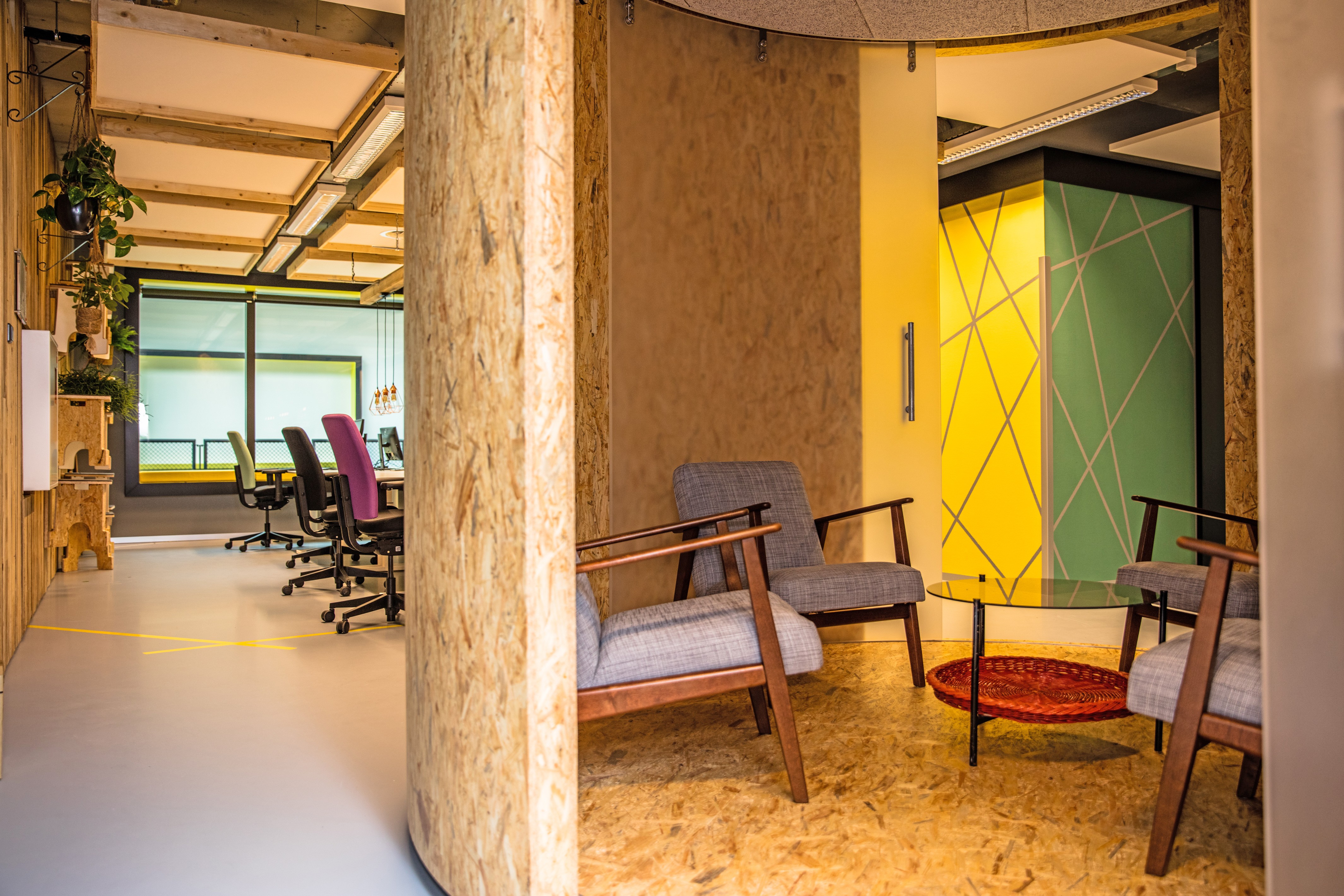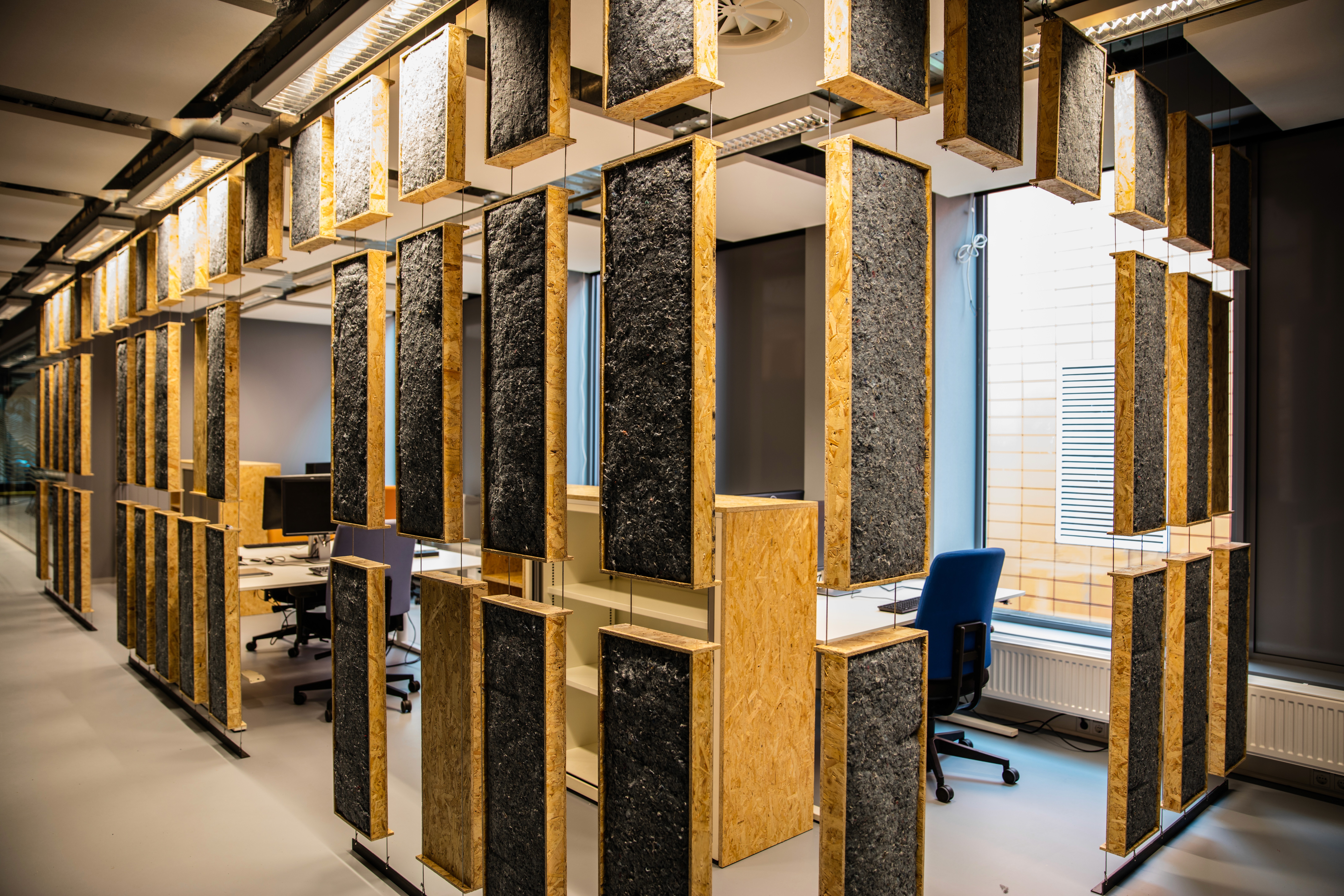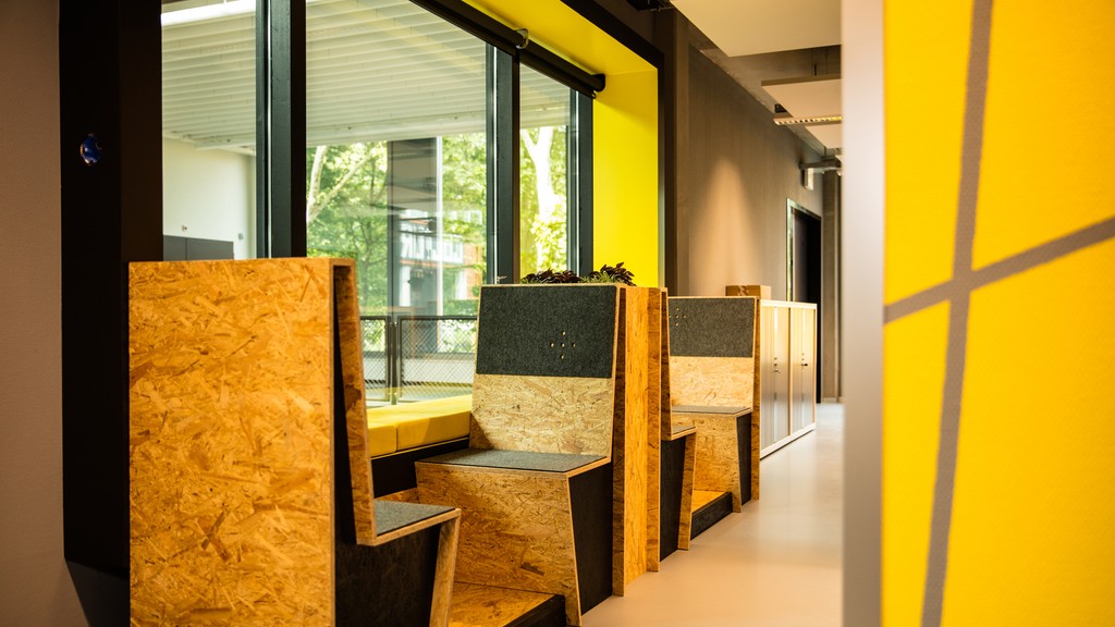 Materialen, wand- en hangobjecten, beplanting en kleine, soms onverwachte details geven de ruimtes hun eigen sfeer. Gebruikers worden uitgenodigd om zelf objecten toe te voegen of juist weg te halen, waardoor het kantoor blijft veranderen en echt van hen wordt.