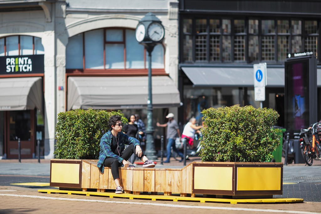 Het extra groen gaf lucht: letterlijk en figuurlijk. Met minder verkeer werd de sfeer zachter en de lucht schoner. Naast het ontwerp werkten we samen met tekstontwerpers MWah en de gemeente aan een communicatielaag die op de objecten en elders in de stad opdook. Zo vertelde het experiment zichzelf aan iedereen die erlangs kwam.